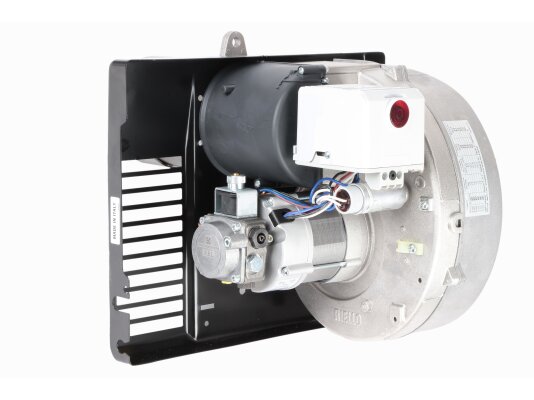 - Одноступенчатая горелка имеет прерывистый режим работы (в течение суток – не менее 1-ой остановки). Центробежный вентилятор оснащен выпуклыми лопастями, что минимизирует количество издаваемого шума при работе горелки. Звуковое давление не превышает 73 дБ.