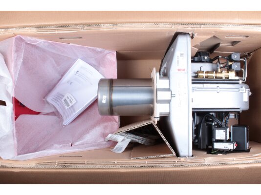 Горелки для котлов отопления Riello Rl необходимо дооснастить форсункой. Дополнительно можно приобрести кожух звукоизоляции, уменьшающий уровень шума на 10 дБ. Опционально доступна длинная огневая голова и другие принадлежности.