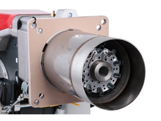 Фронтальное расположение рабочих узлов позволяет выполнять настройку без снятия с котла, что упрощает эксплуатацию. Предусмотрено изменение геометрических параметров головки с учетом мощности горелки.