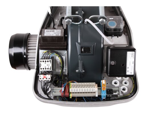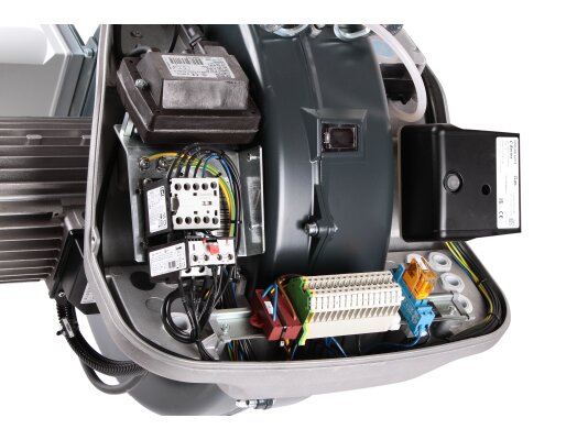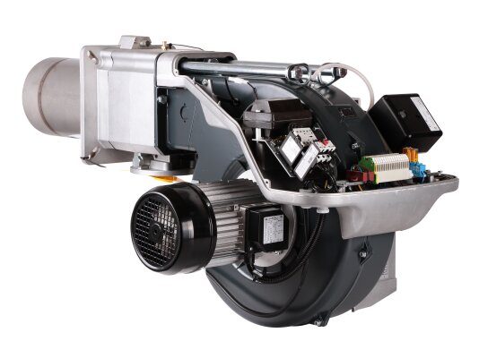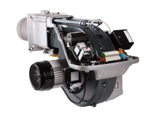 Двухступенчатая газовая горелка работает в прерывистом режиме (за 24 часа хотя бы 1 остановка). Корпус электродвигателя защищен от внешних воздействий, пыли и влаги по стандарту IP 44.