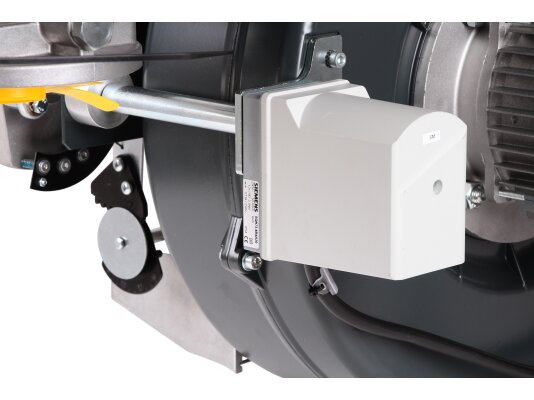 Горелка оснащена сервоприводом, который регулирует подачу газа и управляет воздушной заслонкой. Сервопривод обеспечивает плавную регулировку мощности при изменении ступени, поддерживает необходимое соотношение газ/воздух. Отвечает за закрытие воздушной заслонки при выключении горелки, что способствует сохранению тепла.