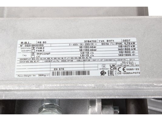 Газовая горелка Riello RS 50, арт. 3784700, купить которую рекомендовано для оснащения среднемощных теплогенераторов, имеет надежное исполнение и длительный срок службы. Оборудование испытано на безопасность при работе с газом, отвечает европейским стандартам качества.